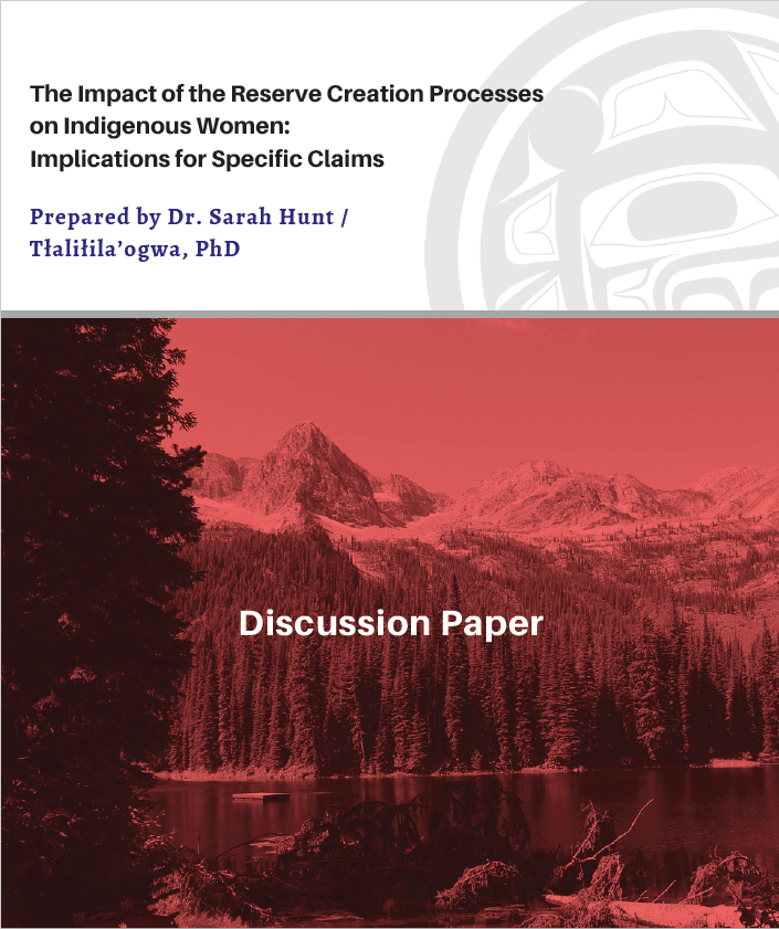 The Impacts of the Reserve Creation Processes on Indigenous Women is prepared by Dr. Sarah Hunt / Tłaliłila’ogwa, PhD. It discusses the impact of reserve creation on Indigenous women and communities in BC and the impacts on Specific Claims policies and processes.
